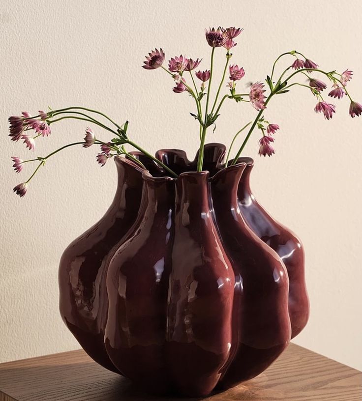 Warna maroon memberikan sentuhan hangat yang elegan, sementara desain minimalis membuatnya tetap terlihat modern dan tidak berlebihan. Cocok dipadukan dengan bunga kecil atau digunakan sebagai dekorasi standalone.